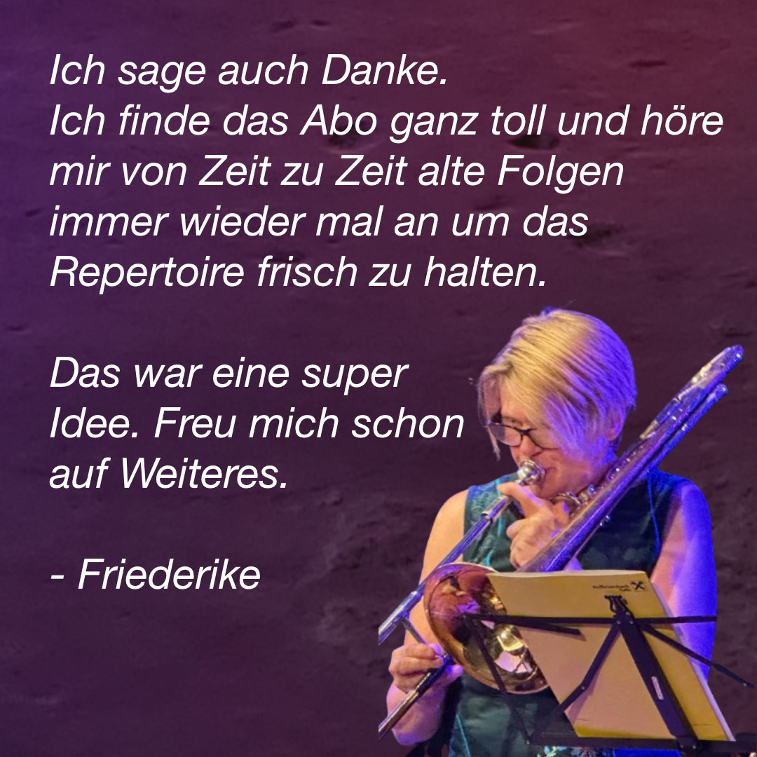 Nun hast du zwei Wochen Zeit, dich intensiv mit dem Stück zu beschäftigen. Danach folgt der nächste Jazzstandard nach dem gleichen Muster.