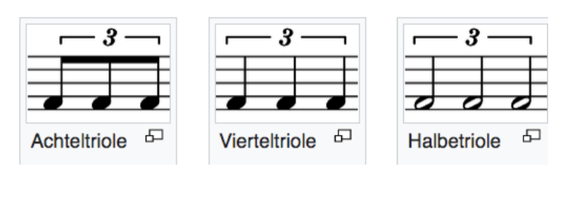 Triole – wenn an die Stelle von zwei gleich langen Noten drei gleich lange Noten derselben Art treten, spricht man von einer Triole: